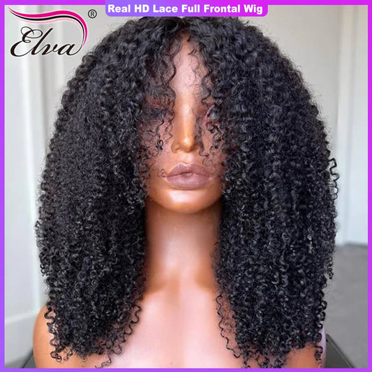 HAIR WIG ~ ELVA HAIR 13X6 HD LACE FRONTAL WIG ~ HUMAN HAIR CURLY LACE FRONT WIG PRE PLUCKED 5X5 HD LACE CLOSURE WIG ~ 180% DENSITY