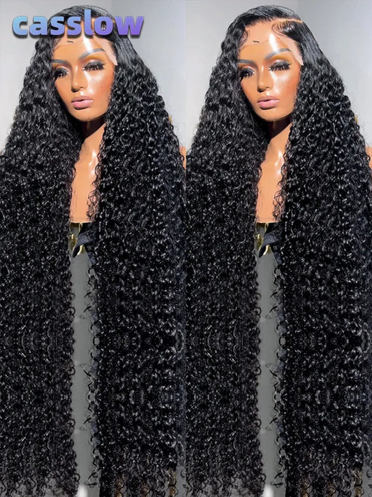 HAIR WIG ~ GLUELESS DENSITY 30-40 INCH DEEP WAVE FRONTAL WIG HD LACE WIG 13X6 HUMAN HAIR 13X4 CURLY LACE FRONT HUMAN HAIR WIGS- 180% DENSITY