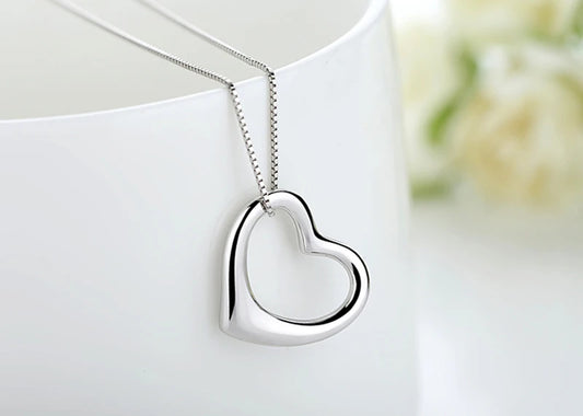 NECKLACE ~ SIMPLE FASHION STERLING SILVER NECKLACE JEWELRY ~ TRENDY HEART PENDANT NECKLACE FOR WOMEN